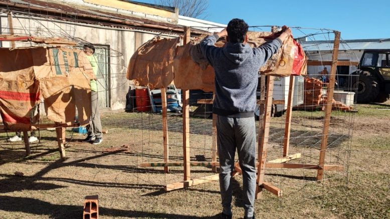 Comenzó el armado del muñeco de la primavera en Pueblo Liebig