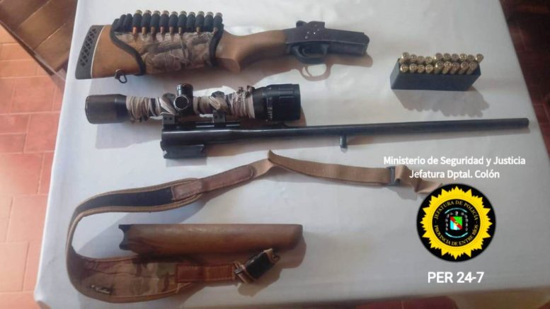 Fue en el contexto de una investigación llevada a cabo por personal policial de Comisaría La Picada, dependiente de la Jefatura Departamental Colón, en virtud a una denuncia radicada en la víspera por un ciudadano afincado en B° El Brillante de San José. Éste dio cuenta que tras una disputa con otro vecino del lugar, este último lo habría amenazado con un arma de fuego larga. Es así que se llevaron cabo tareas investigativas por las cuales se solicitó y obtuvo del Juzgado de Garantías Colón, una orden de allanamiento y registro domiciliario para la finca del encausado, situada en inmediaciones de Calles Dr. Bard y Luis Pasteur de dicha localidad. El procedimiento se llevó a cabo en horas de la tarde de este lunes, arrojando resultados favorables para la causa que se investiga. Procedieron al formal y preventivo secuestro de un arma de fuego tipo Fusil, calibre 308 mm., marca ROSSI, con mira telescópica marca SHILBA y la cantidad de 20 cartuchos calibres 7,62 mm.