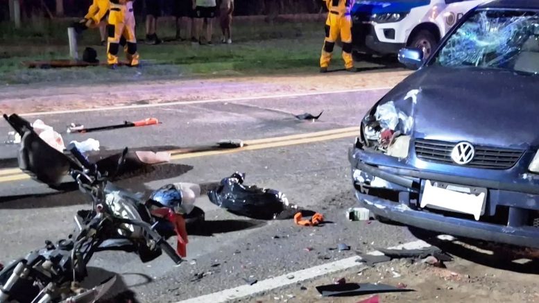 Por razones que se tratan de establecer, una motocicleta marca Corven Energy 110 cc., conducida por un hombre de 31 años, que circulaba en sentido Norte a Sur, colisionó con un automóvil marca Volkswagen Gol, guiado por un hombre de 41 años, quien lo hacía en sentido contrario por la misma arteria.