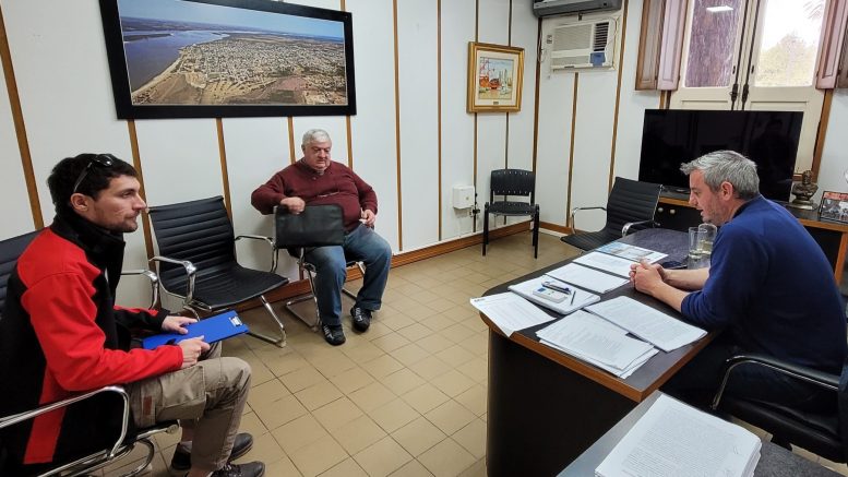 El Intendente de Colón José Luis Walser recibió días pasados en su despacho al párroco de la parroquia del Carmen Rubén Dalzotto y al arquitecto José Manucci quienes les mostraron detalles del proyecto «Casa San José».